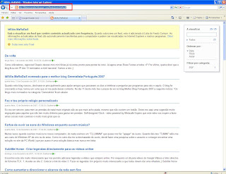 3. Quer sejam utilizadores do Firefox ou do Internet Explorer, podem encontrar o tal símbolo cor-de-laranja no browser, que nos vai permitir adicionar este blog ao Google Reader como podemos ver na imagem. Então vamos seleccionar a opção ATOM