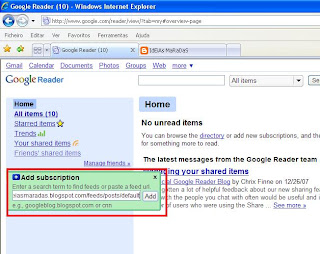 Pronto acabamos de adicionar o primeiro blog ao Google Reader.